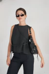 Musculosa confeccionada en un rayón corrugado y con un diseño versátil para darle diferentes usos. La tela tiene una especie de brillo opaco, lo que te va a permitir usarla de día o de noche, según cómo la combines. Tiene lazos para atarla en zig zag, marcando o no la cintura, según cómo te guste más. También podés usarla toda suelta y usar los lazos como collar estilo choker. Además, cuenta con botones en la espalda para que muestres todo lo que quieras (podés usarla toda cerrada también). Tiene forro interno en el busto para que no transparente.Un bonus track de esta prenda es que la tela, gracias a su composición, no arruga mucho e incluso queda bien dejarla sin planchar porque se destaca más el estilo corrugado. Podés usarla como te guste más pero es un dato clave, sobre todo para viajes :D