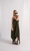 Vestido confeccionado en el mismo lino sastrero del Set Frida. Es liviano, no transparenta y tiene el peso suficiente para que la caída irregular se destaque. Cuenta con forro interno en el busto y tiras regulables para usarlo de distintas formas: con las tiras rectas (puede usarse con corpiño porque tienen algo de grosor para taparlo), con las tiras atadas en el cuello (puede usarse como collar en el cuello lo que sobre de las tiras) o con las espalda en cruz.