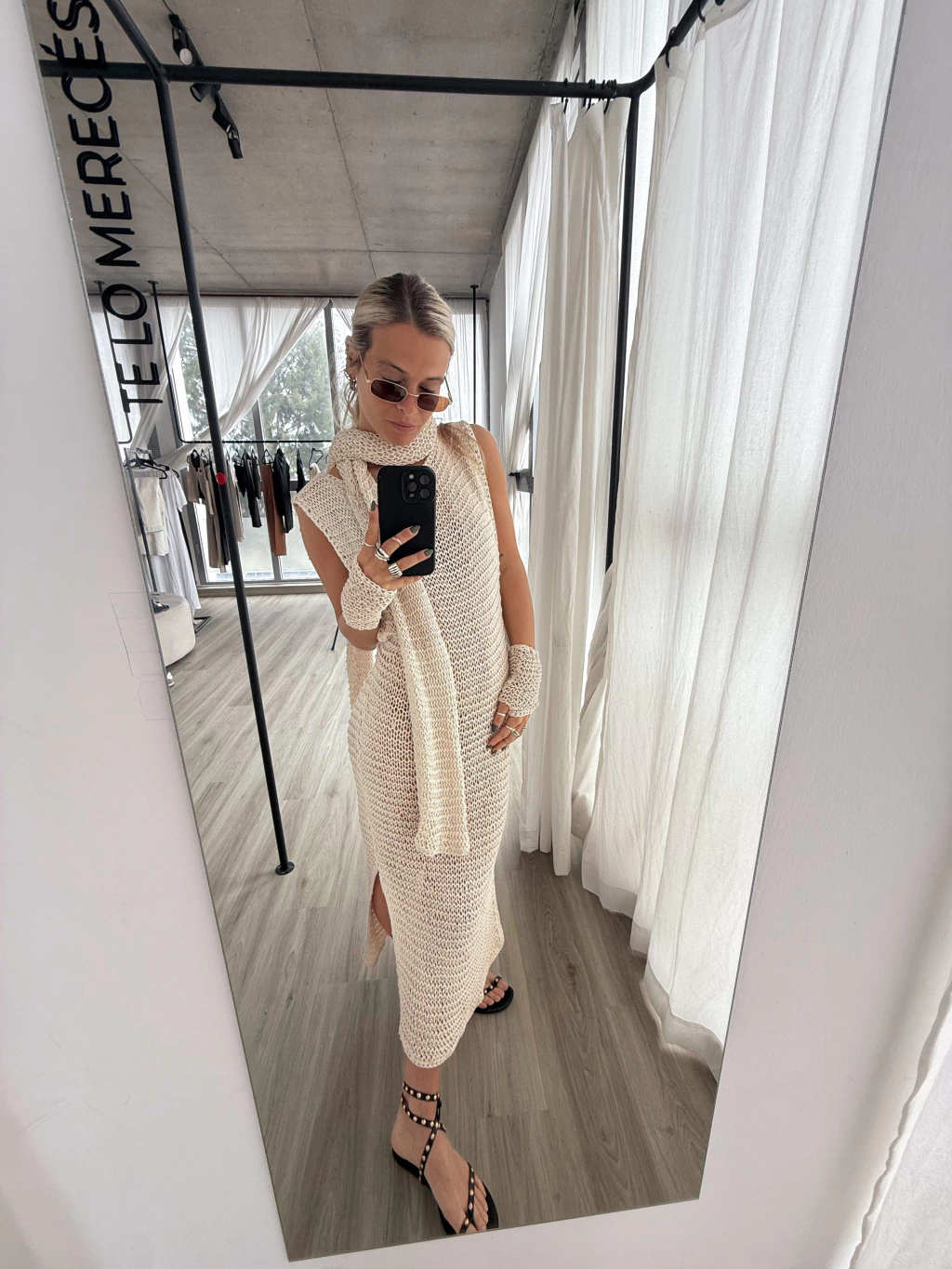 Vestido tejido a dos agujas de forma artesanal para lograr una textura única. Son elegantes y a la vez muy cancheros y descontracturados. Según cómo lo combines, vas a poder usarlo en varias ocasiones diferentes. Para salir con botas y un vestido al cuerpo o para la playa! Ideal para estar espléndida esta temporada.